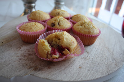 Vanilje cupcakes med sjokolade og bringebær