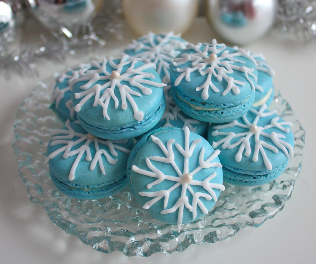 Makroner er en av mine favoritt desserter! De kan lages i så mange forskjellige varianter, både på smak, farge og pynt. Nå i førjulstiden har jeg laget noen blå vaniljemakroner pyntet med snøfnugg. Her kommer oppskriften!